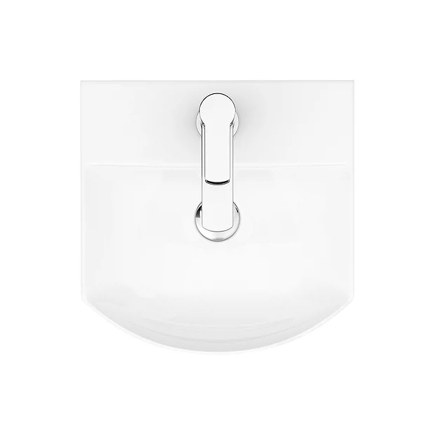 The eye catching luxury Arezzo compact basin with one tap hole has a stylish contemporary shape, provides you with a handy space-saving solution for your cloakroom or en-suite. Designed to be wall hung or mounted onto a worktop. Manufactured from high quality vitreous china with a gloss white finish. Some small dimensional variation may occur due to manufacturing tolerances. Waste not included.