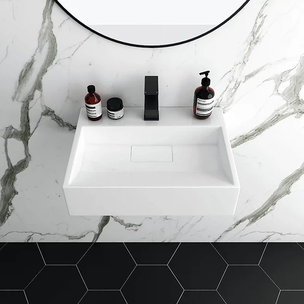 Add a glamorous twist to your bathroom with the Arezzo Wall Mounted or Countertop Stone Resin Basin. The contemporary rectangular shape and clean lines of this Arezzo basin will elevate your space, creating a boutique hotel feel. Designed so you can mount it onto a worktop console or hang it on the wall, this versatile 500mm wide sink offers different installation options to suit your room. The countertop basin is crafted from hardwearing stone resin and is finished in an easy to clean smooth white gloss. Itβs supplied with a coordinating hidden waste cover for a sleek look.