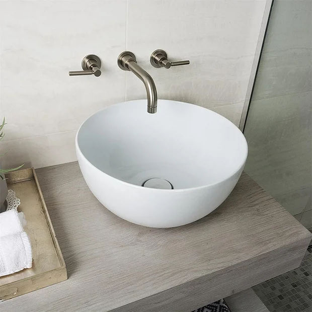 The BagnoDesign Gloss White Koy Round Countertop Basin creates a modern feel to your bathroom. Measuring 400mm in diameter, the basin is made from high quality ceramic and is designed without an overflow or taphole. The Koy countertop basin will look smart paired with a high rise tap or wall mounted basin mixer.Â