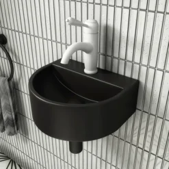 The MyHome Collection from Britton is an elegant and timeless bathroom range, focusing on solutions to the space limitations of many homes. This 55cm wall hung basin with semi pedestal features a beautiful thin rim, helping to maximise internal space whilst reducing the amount of external space required. Features a single tap hole with integral overflow.Â