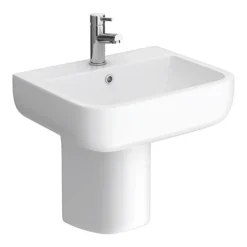 The contemporary block design of the Brooklyn Modern Square Basin & Semi Pedestal makes it a smart addition to a sleek bathroom. This 520mm wide sink is constructed of white gloss ceramic, making it both durable and easy to clean. The semi pedestal basin not only hides unsightly pipework, but as a wall hung basin, it also gives you the added benefit of more floor space. This makes it ideal for cloakrooms or smaller bathrooms. Complete the look with the chrome Cruze Contemporary Mono Basin Mixer for the sink’s single tap hole.