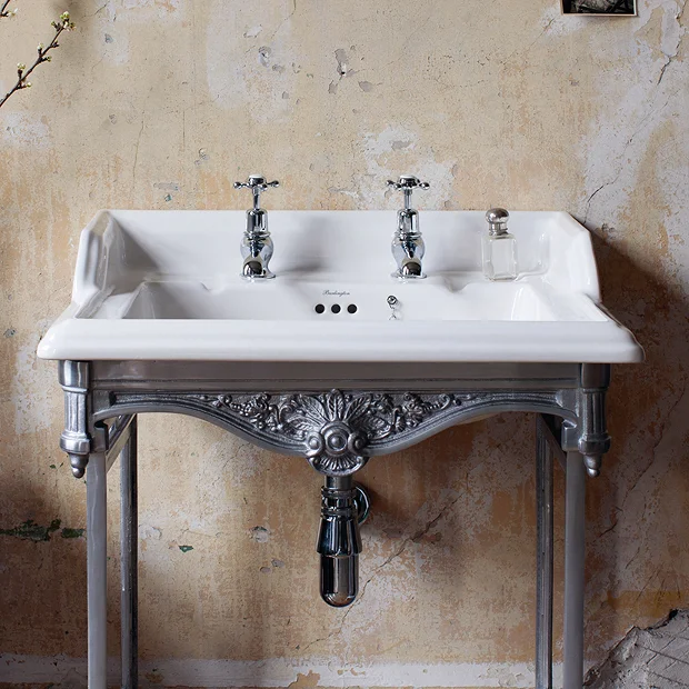 Burlington Classic 65cm Basin with Brushed Aluminium Wash Stand – Various Tap Hole Options