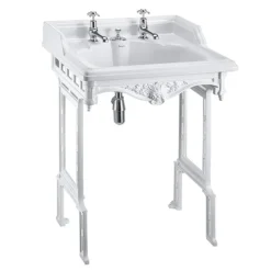 The Classic basin with beautifully designed white aluminium wash stand, crafted and manufactured by the industry leading traditional brand Burlington.