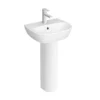 The 580mm Riviera D-Shape Basin with Riviera Full Pedestal is the perfect addition to fulfill all your art deco bathroom ideas. The ergonomic design and sweeping corners allow this basin to fit perfectly into smaller bathroom spaces. You can also choose from 0, 1, 2, or 3 tap holes so your beautiful new basin can completely suit your traditional bathroom needs.