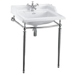 The Victorian Basin is beautifully designed, crafted and manufactured by the industry leading traditional brand Burlington. This Basin is available in a choice of 1, 2 or 3 Tap holes (1TH pictured), this option opens you up to be able to choose from the entire range of Burlington Taps. This Basin comes complete with a stunning Chrome Wash Stand.