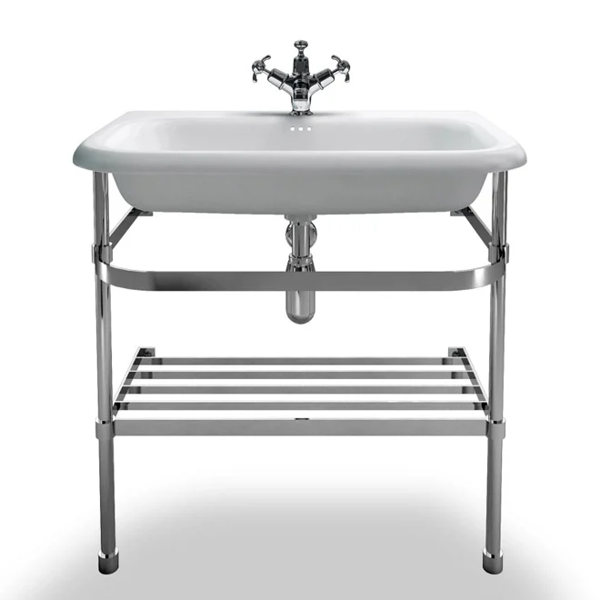 Clearwater – Large Traditional Roll Top Basin with Stainless Steel Stand – W750 x D470mm – B9E-B9ES