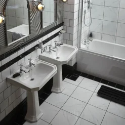 With a distinctive Art Deco twist, the Granley offers elegance to any period bathroom. This stylish basin and pedestal is available in a 2 tap holes only and is constructed from the finest vitreous china. Heritage back all their sanitaryware with a lifetime guarantee.