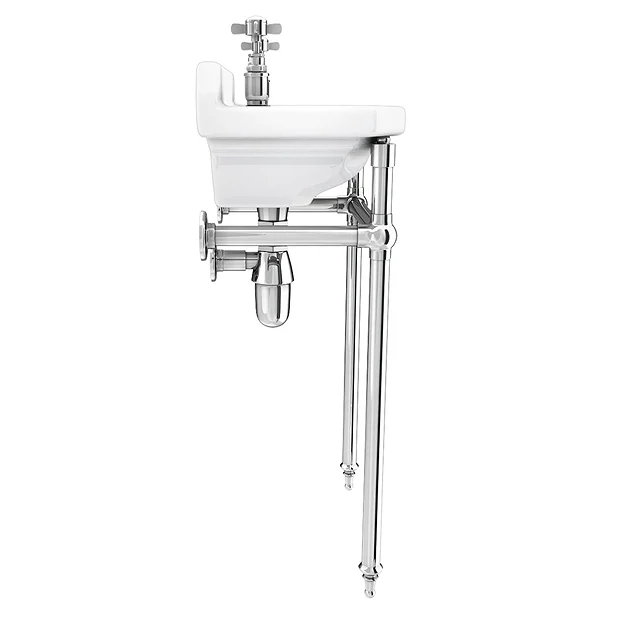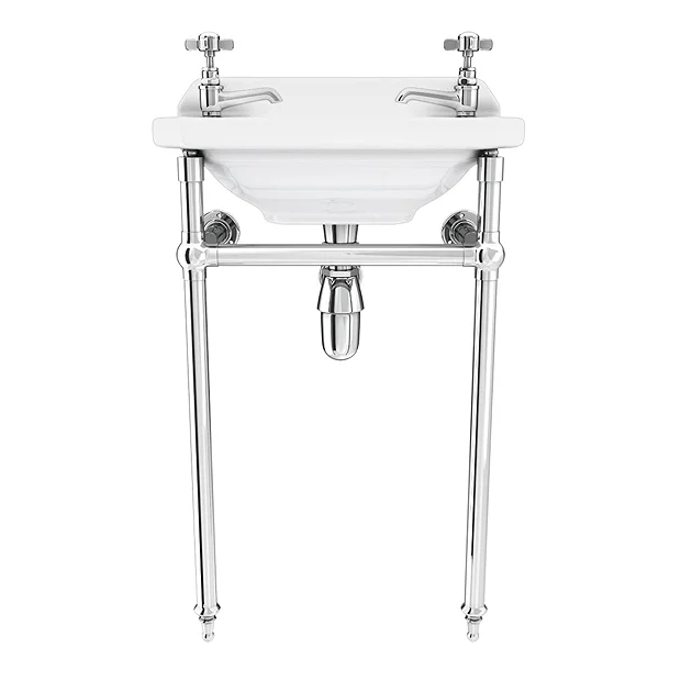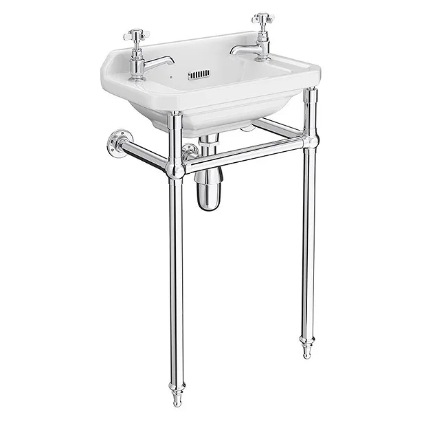 Keswick Traditional Wall Mounted Cloakroom Basin & Chrome Wash Stand (2 Tap Hole – 515mm Wide)