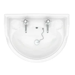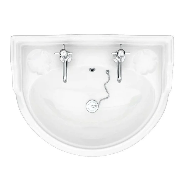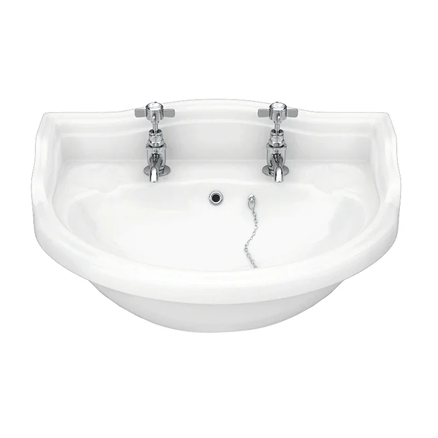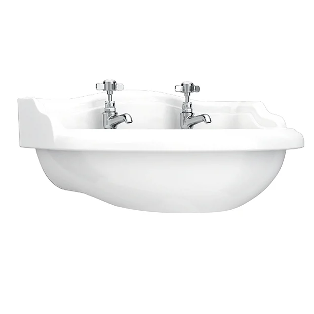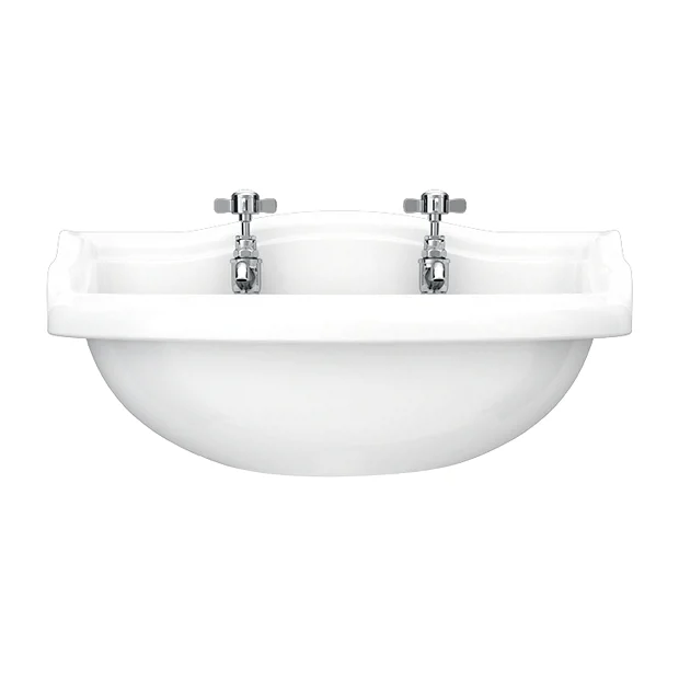 The wall hung Monaco Traditional 500mm 2 Tap Hole Cloakroom Basin, evoking the classical style of a bygone era, yet manufactured to today’s high exacting standards, perfect for providing a period look in any home.
