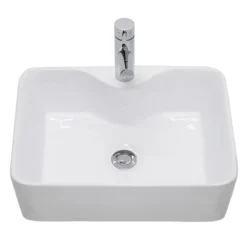 Designed to be mounted on a worktop console or vanity unit, the Nuie Tide Square Ceramic Counter Top Basin is a sophisticated option for contemporary bathrooms. At a modest 485mm wide, this modern sink is a fine choice to make the most of smaller spaces. This Nuie basin is suitable for use with mono sink mixer taps and features an eye catching rectangular shape, subtly tapered edges and a single tap hole. It’s made from long lasting glazed ceramic, with a classic white gloss finish that will look the part in any modern bathroom.