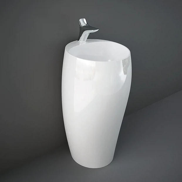 The stylish and sophisticated RAK Cloud 50cm free standing basin features curved soft lines ideal for the modern bathroom. Made from high quality ceramic, the basin comes with a single tap hole and supplied with a matching ceramic waste cover. For peace of mind all RAK sanitaryware is guaranteed for 25 years.Â