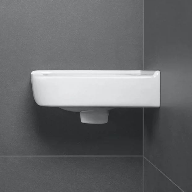 Versatile and inexpensive, the O.novo range from Villeroy and Boch offers the full spectrum of modern bathroom designs. This O.novo corner handwash basin is the ideal choice for small bathrooms or guest toilets. Made from high grade gloss white ceramic, it features a single tap hole and built in overflow.